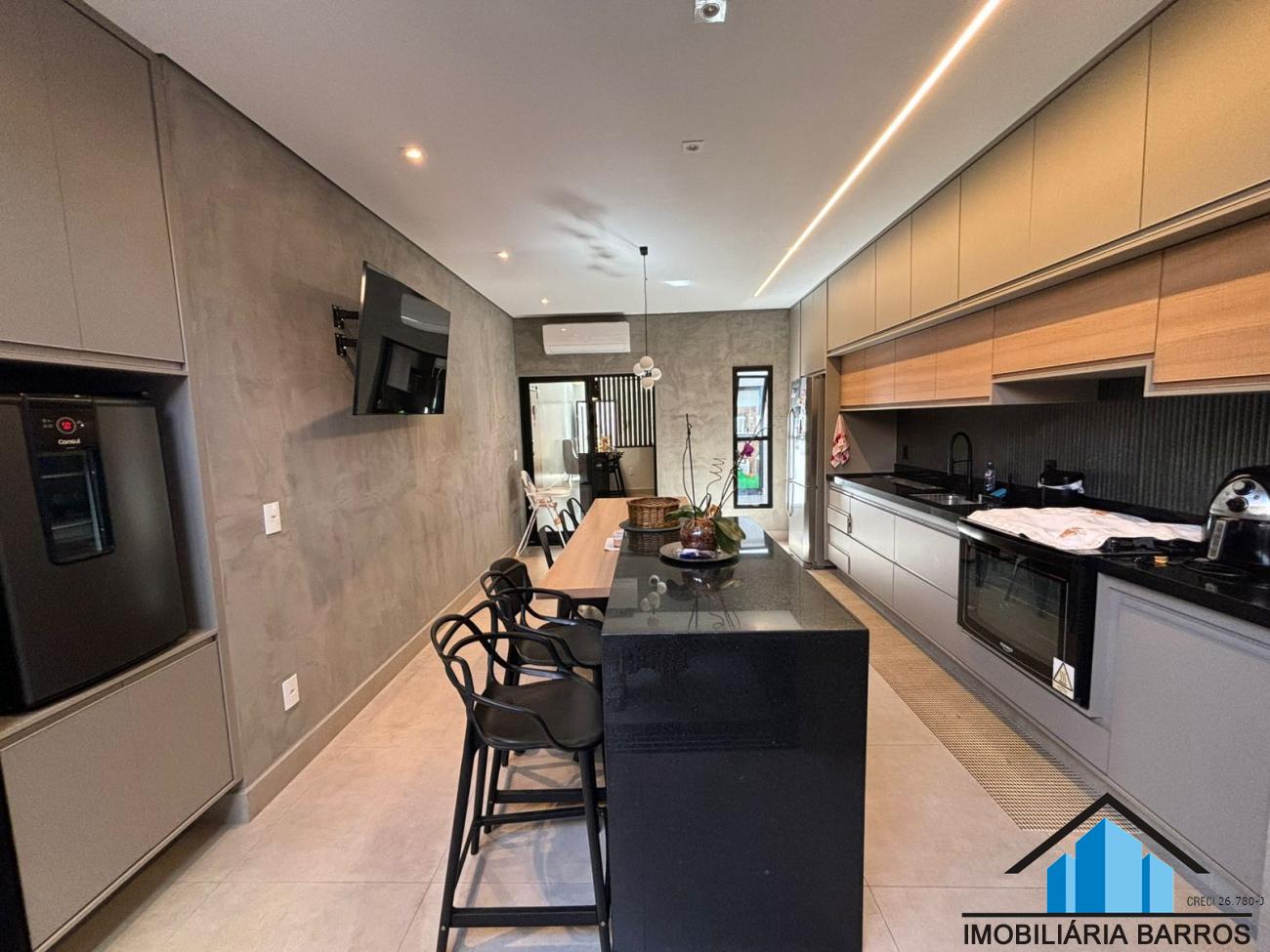 Cozinha gourmet com armários e fogão embutido