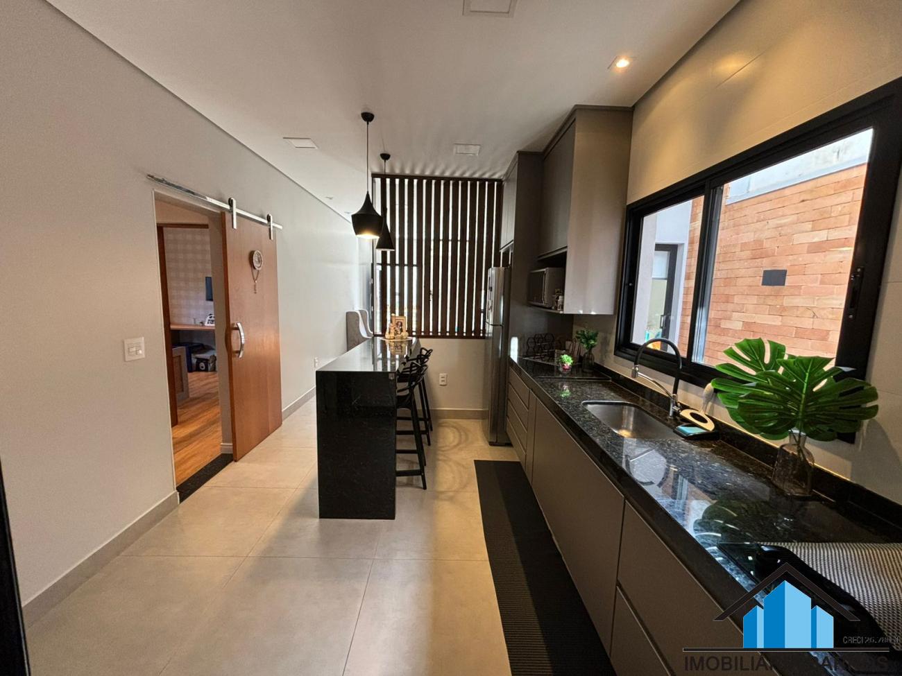 Cozinha gourmet com armários e fogão embutido
